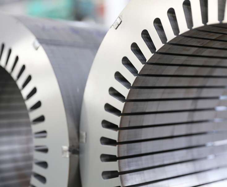 We manufacture stator/rotor iron cores, cast aluminum rotors and stator/rotor sheets that consume lower energy with power generators, explosion-proof motors, EV motors, traction motors and other motors of a spectrum of voltages. Our products are widely used in nuclear, wind and thermal power, new energy, and green business. We also customize and manufacture molds and second-class fixtures.